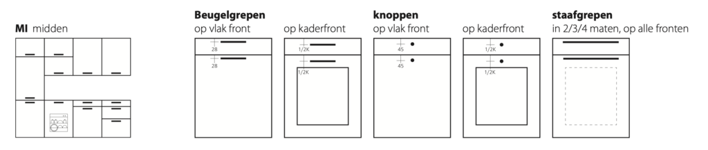 Bij de keuze van een knop of greep wordt je gevraagd om de boring aan te geven zodat alle fronten met deze juiste boringen worden geleverd.