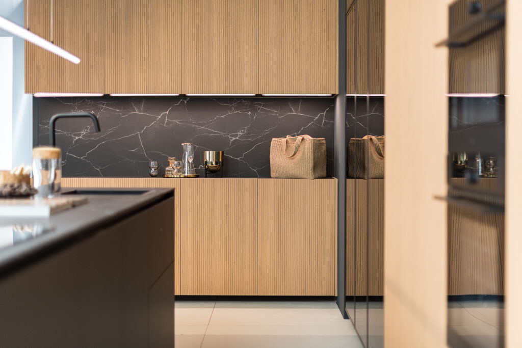 De zwarte variant van het nieuwe programma Memory RI is afgewerkt met een anti-fingerprint coating. Vooral bij donkere kleuren is het eigenlijk een must om voor anti-fingerprint afwerking te kiezen. Dat past ook bij ons advies om geen grepen toe te passen, waardoor je de deuren opent door ze vast te pakken.